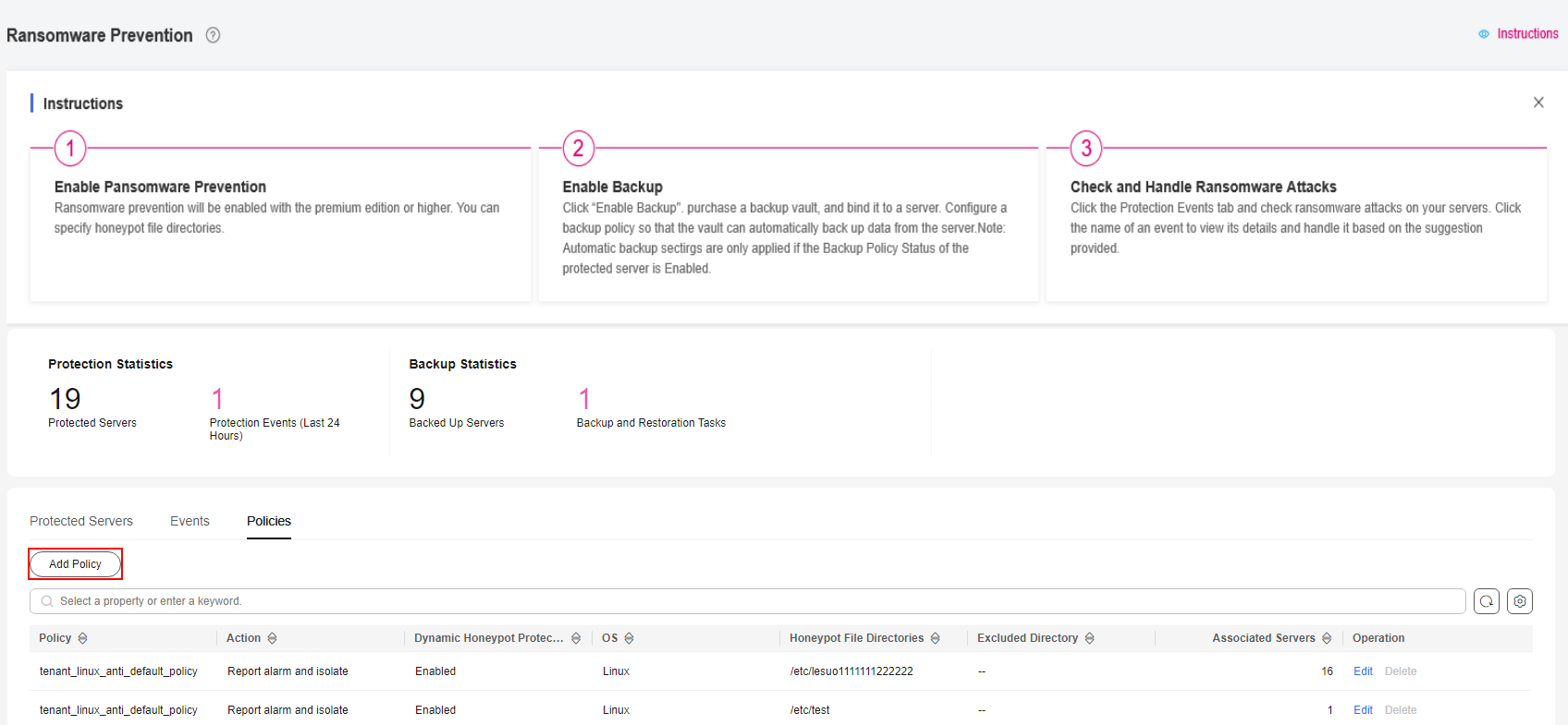 You can enable ransomware prevention and backup to defend against ransomware attacks and reduce service loss risks, enhancing the ransomware prevention capabilities.