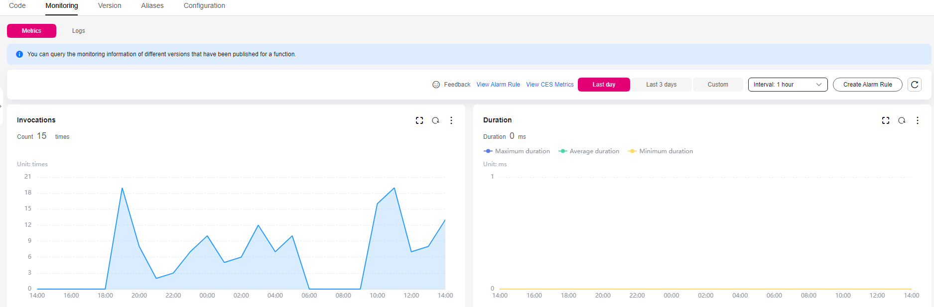 On the Monitoring tab page of the function, check the number of invocations, as shown in Figure 5.